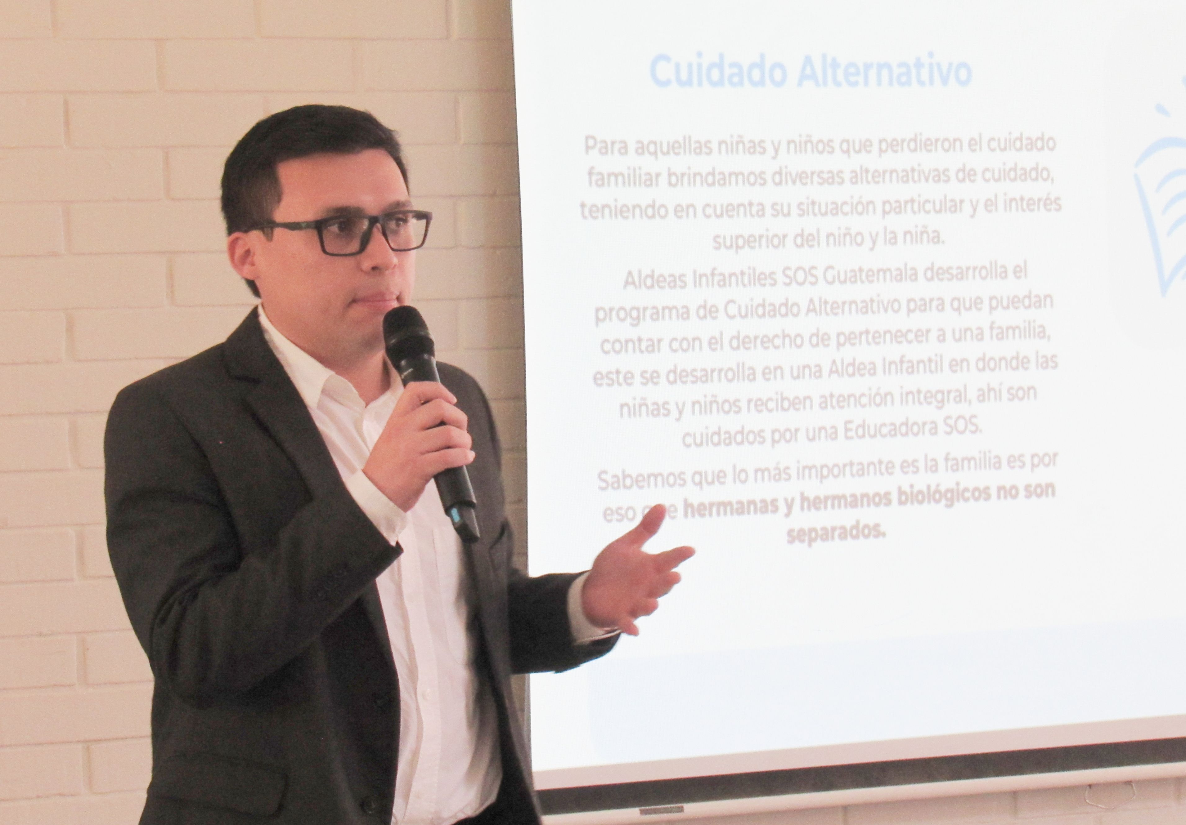 Tuvimos también el honor de escuchar al Lic. Edgar Marín, representante de Aldeas Infantiles SOS Guatemala, quien expuso el trabajo que esta organización ha desempeñado durante años en favor del bienestar y la protección integral de la niñez guatemalteca.